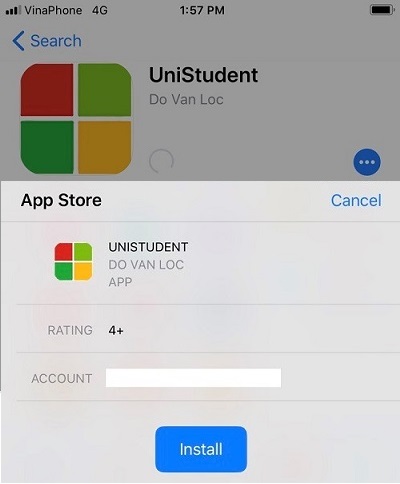 Cài đặt ứng dụng Unistudent trên App Store